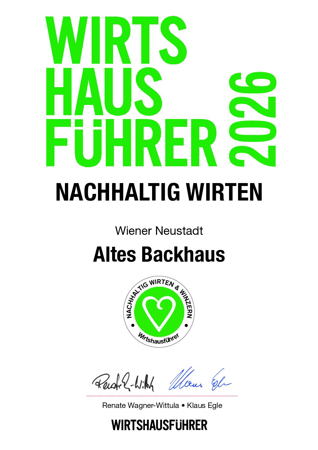 Als Gastronomiebetrieb, dem nachhaltiges Arbeiten ebenso wichtig ist wie uns, haben wir Sie in unser Buch und auf unsere Website https://www.wirtshausfuehrer.at/altes-backhaus-wiener-neustadt/ aufgenommen und präsentativ vorgestellt.